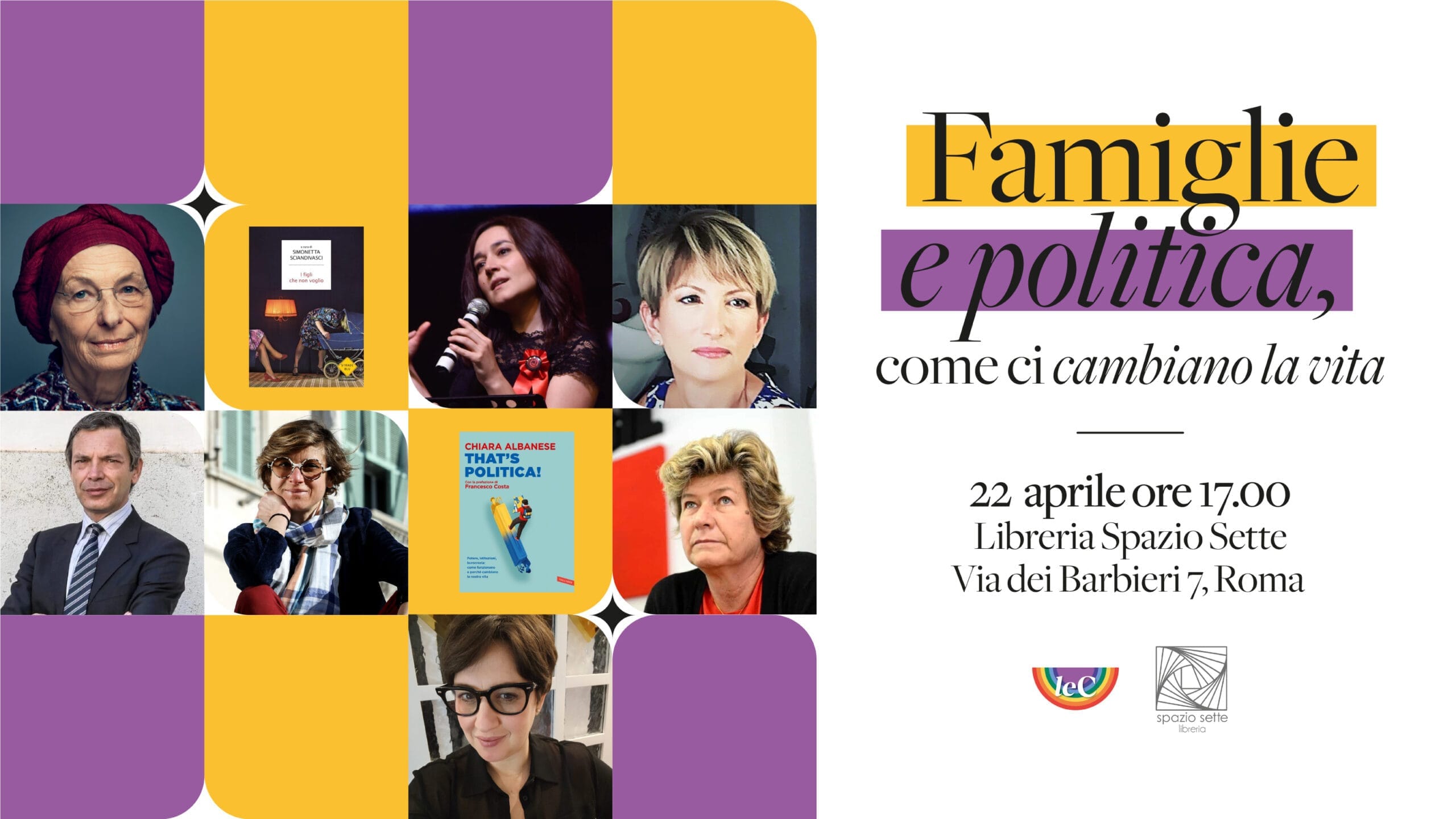 Le Contemporanee sono felici di invitarvi ad un interessantissimo dialogo ed evento che si terrà sabato 22 aprile alle ore 17 dal titolo “Famiglie e Politica, come ci cambiano la vita”, nella Libreria Spazio Sette in Via dei Barbieri 7 a Roma.