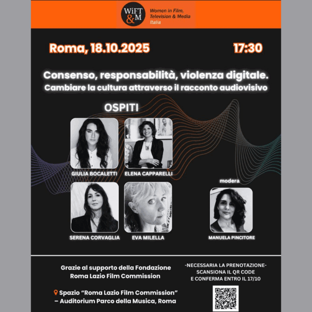 Grazie al supporto della Fondazione Roma Lazio Film Commission. L’evento si svolge presso lo spazio “Roma Lazio Film Commission” – Auditorium Parco della Musica, Roma.