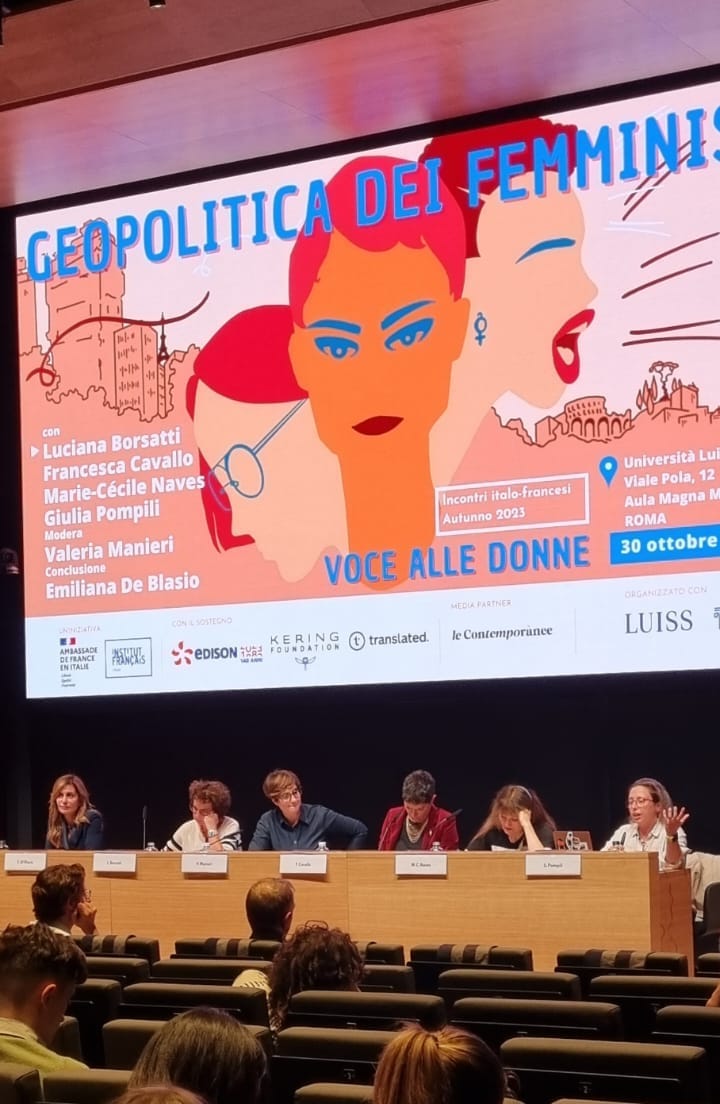Lunedì 30 ottobre, dalle ore 15.30, all’interno della rassegna Italo-francese “Voce alle donne!”, organizzata da Institute Française e dall’Ambasciata francese in Italia, con la media partnership di Le Contemporanee, ha avuto luogo ll panel “Geopolitica dei femminismi”, presso l’Aula Magna Mario Arcelli dell’Università LUISS Guido Carli.