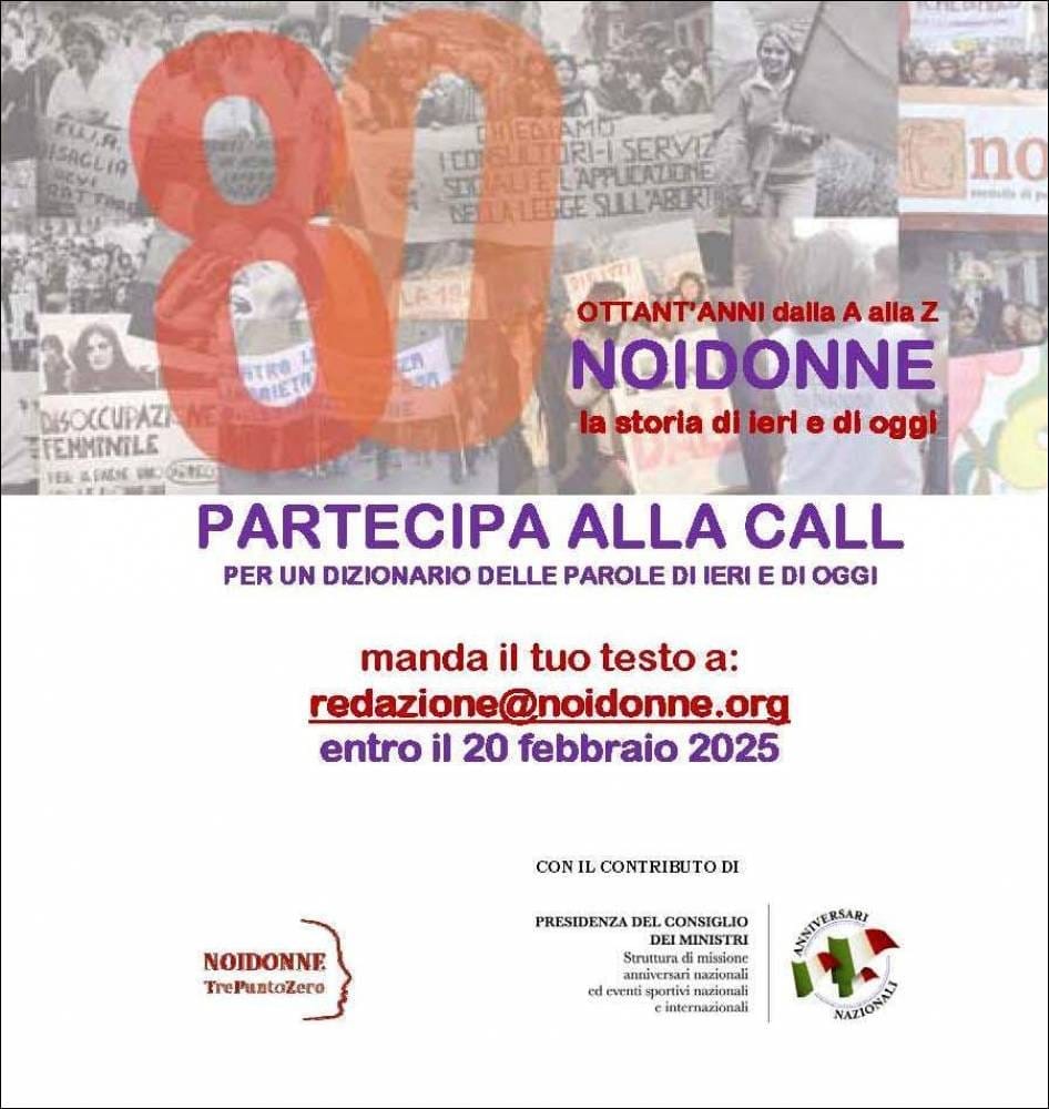 In questo passaggio della storia di NOIDONNE (1944/2025), che nel 2024 ha compiuto 80 anni, NOIDONNE propone di comporre insieme un dizionario al femminile CHE RACCONTA LE DONNE GUARDANDO AL FUTURO e traendo la forza dal passato per affrontare le complessità del nostro tempo.