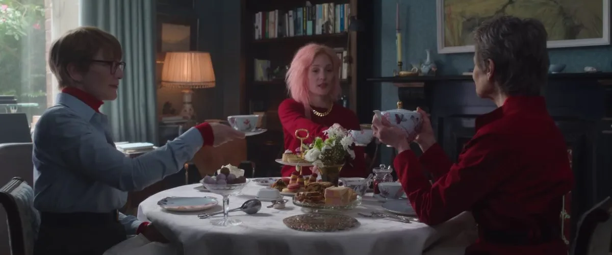 La seconda famiglia, con una madre egocentrica anche se fin troppo sobria, che fa analisi al telefono e si deduce faccia la scrittrice. Una donna, Charlotte Rampling, impenetrabile alle emozioni ma che gestisce male l’ansia di vedere le figlie una sola volta all’anno. Due figlie, diversissime, che un po’ si amano e un po’ si detestano, che non raccontano sé stesse né alla madre, né tra sorelle. Una delle due è una Cate Blanchett quasi irriconoscibile nel suo essere dimessa.