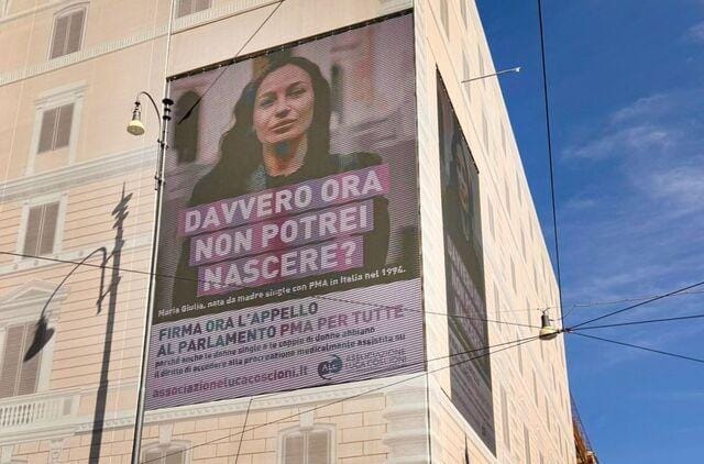 Protagonista dell’iniziativa è Maria Giulia d’Amico, 31enne nata da madre single grazie alla PMA, oggi vietata in Italia per le donne non in coppia eterosessuale. Sul manifesto in piazza Risorgimento, a Roma, campeggia la domanda provocatoria: “Davvero oggi non potrei nascere?”