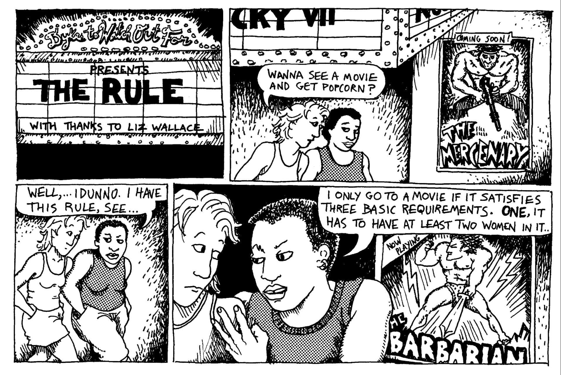 Chiariamo innanzitutto una cosa per evitare probabili equivoci. Alison Bechdel è la fumettista che, nel 1985, ha pubblicato la vignetta “The Rule” che fissa i canoni di un prodotto multimediale che rispetti appieno la parità di genere.